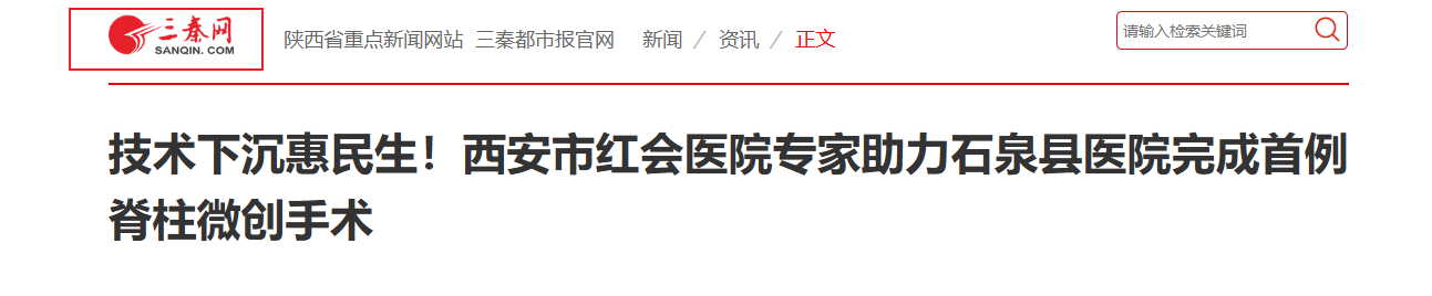三秦都市报-三秦网讯(记者 阮班慧)近日,在西安市红会医院脊柱病院腰椎病区帮扶专家杨俊松副主任医师的指导下,石泉县医院骨科副主任黄振勇带领团队,成功开展县域首例脊柱内镜下单侧入路双侧减压术(ULBD)。该手术的顺利完成,不仅为一名腰椎间盘突出伴椎管狭窄患者解除了…