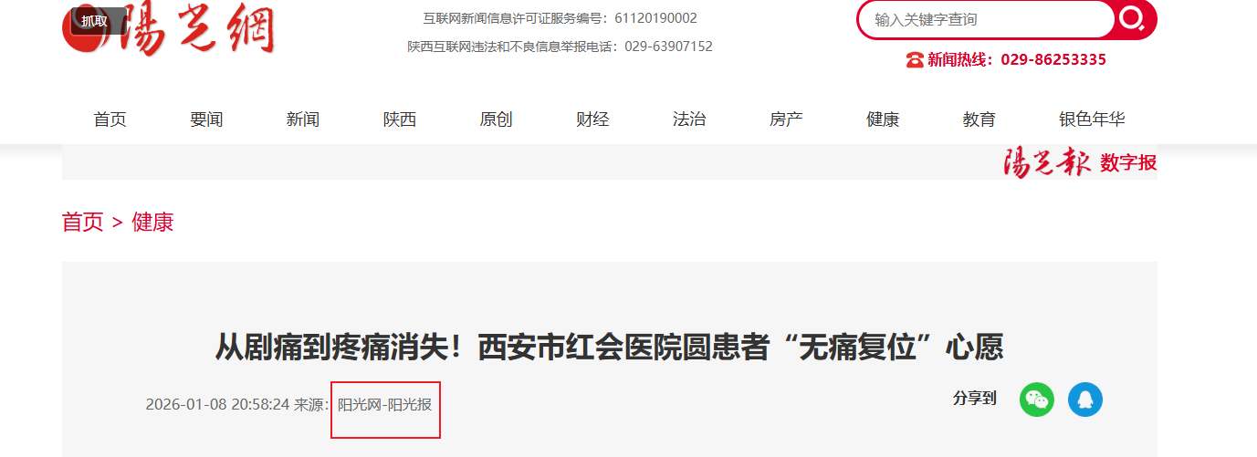 阳光讯(记者 郑亚雷 通讯员 曾雪琴)近期,西安市红会医院手法复位室与创伤病区、麻醉科联动协作,为一名髋关节后脱位患者实施全麻下无痛复位手术,既满足患者对“无痛救治”的迫切需求,又通过规范诊疗流程保障复位安全,让患者在全程无痛的状态下重获肢体功能,尽显医疗服务…