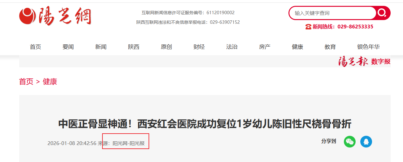 阳光讯(记者 郑亚雷 通讯员 曾雪琴)近日,西安市红会医院手法复位室凭借精湛的中医正骨技术,成功为一名1岁3个月大的女童实施陈旧性左前臂尺桡骨骨折闭合复位,无需手术即可化解复杂骨折难题,最大限度减轻了患儿痛苦,彰显了中医传统疗法在儿童复杂骨折治疗中的独特优势与显…