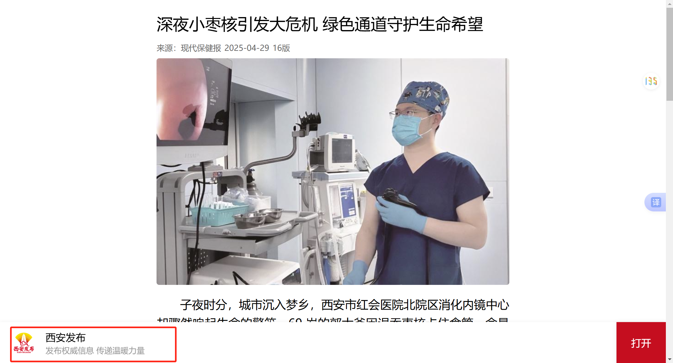 子夜时分,城市沉入梦乡,西安市红会医院北院区消化内镜中心却骤然响起生命的警笛。69 岁的郭大爷因误吞枣核卡住食管,命悬一线,西安市红会医院北院区消化内镜中心的绿色通道,正上演着一场惊心动魄的生死救援。 惊魂奔袭:深夜里的生命呼救 一颗小小枣核,让郭大爷体会…