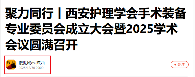 12月26日,由西安护理学会主办,西安市红会医院承办的“西安护理学会手术装备专业委员会成立大会暨2025学术会议”在西安市红会医院北院区学术报告厅隆重举行,西安市36家各级医疗机构77位委员代表及手术室护理同仁齐聚一堂。西安市卫生健康委员会学会服务中心主任郝剑、西安市…