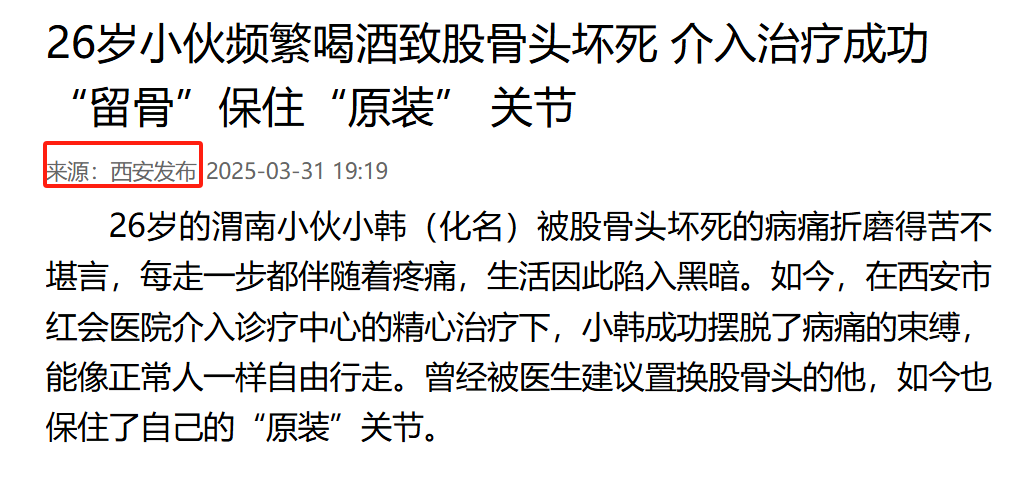 26岁的渭南小伙小韩(化名)被股骨头坏死的病痛折磨得苦不堪言,每走一步都伴随着疼痛,生活因此陷入黑暗。如今,在西安市红会医院介入诊疗中心的精心治疗下,小韩成功摆脱了病痛的束缚,能像正常人一样自由行走。曾经被医生建议置换股骨头的他,如今也保住了自己的“原装”关…