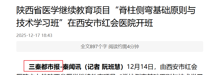 三秦都市报-秦闻讯(记者 阮班慧)12月14日,由西安市红会医院主办的陕西省医学继续教育项目“脊柱侧弯基础原则与技术学习班”(项目编号:2025-04-07-027〔陕〕)正式开班。省内外80余名骨科及相关领域专业人士齐聚一堂,共同聚焦脊柱侧弯诊疗领域的前沿理论与核心技术,展开…