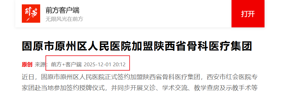 近日,固原市原州区人民医院正式签约加盟陕西省骨科医疗集团,西安市红会医院专家团赴当地参加签约授牌仪式,并同步开展义诊、学术交流、教学查房及示教手术等系列活动。西安市红会医院相关负责人表示,将通过技术帮扶、人才培养、学科共建和双向转诊等深度合作,推动原州区人…