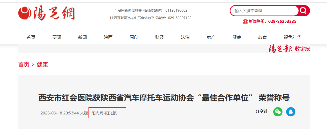 阳光讯(记者 郑亚雷 通讯员 王月)近日,陕西省汽车摩托车运动协会正式授予西安市红会医院运动医学诊疗中心“最佳合作单位”荣誉称号。这一荣誉不仅是对中心在各类赛事医疗保障工作中卓越表现的肯定,更彰显了其在区域运动医学领域的深厚影响力。长期以来,西安市红会医院运动…