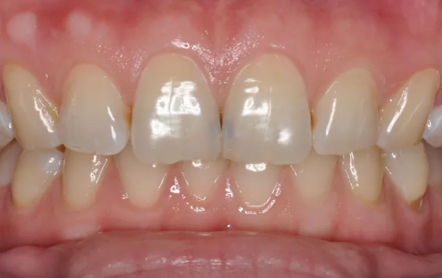 一口整齐的门牙是笑容的“门面担当”,但这里也可能潜藏着不易察觉的健康隐患。近日,患者小陈,因定期洁牙来到西安市红会医院口腔科就诊,他自觉口腔卫生良好,无任何不适。然而,在进行检查时,医生敏锐地发现其两颗上颌门牙有些发黑,从内侧(腭侧)看能看到明显的龋洞。这…
